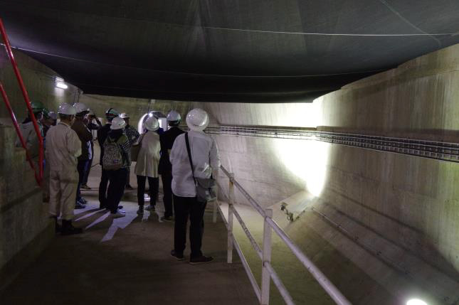 今回の見学会では、全国的にも珍しい「中空重力式」を採用した内の倉ダムをはじめ、加治川流域における水利用を学ぶ事を主旨としています。1966〜1967年に連続して発生した加治川の大水害(羽越水害)をきっかけに、内の倉ダムに流域を水害から守る機能が追加された経緯などについて、コンクリートダム内部を体感しながら学びました。また、松岡ため池、内の倉発電所など、ダム以降の水利用についても見学会の道中に組み込まれており、上流から下流に至る水利用の全体像を把握することができました。